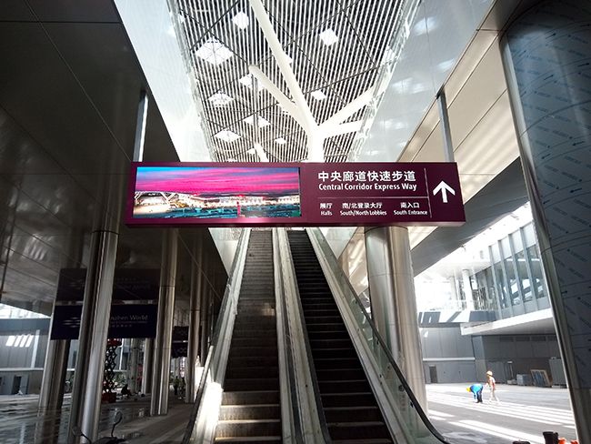 为了保证屏体显示效果,显示屏全部采用大于16比特灰度技术处理,使屏体在任何亮度区域内,都有超强灰度表现能力。同时,160度超宽视角,能让观众在不同角度均可享受完美的视觉体验。在这片160万平米的土地上,遍布着元亨大大小小的LED显示屏共197块,显示总面积达3044平米。同时也是元亨显示屏产品使用高端日亚灯珠最集中的项目,为了检验显示效果,保证产品质量,今年10月,元亨与日亚双方高层领导还特意到深圳国际会展中心施工现场考察。