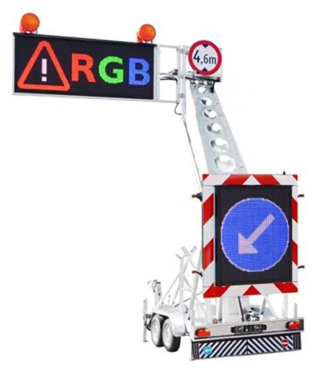移动式的拖车屏适用于道路和桥梁建设施工现场,火警现场及停车场等地的交通信息播报系统,因其便捷的移动性能,LED 交通情报板不仅可以临时向驾驶人员提供有效的交通信息,提醒驾驶人员注意车速、天气等,减少交通事故的发生;还可以显示指挥调度部门的指令、通告以及相关的道路信息,从而有效地对交通进行诱导,提高道路的交通运输能力。